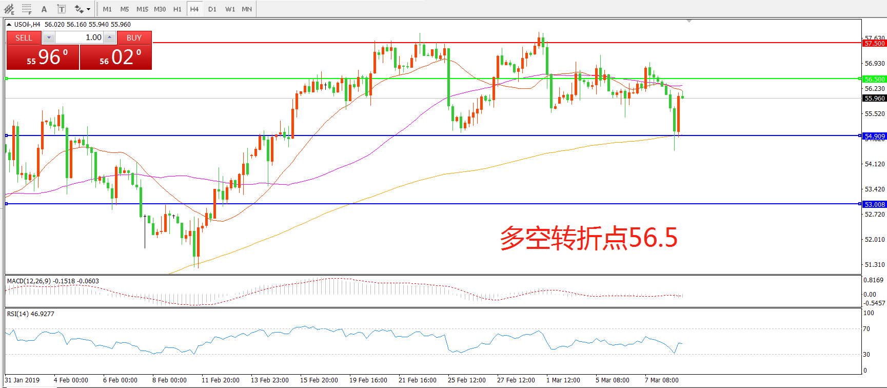 周五美国2月非农就业人数仅仅增加2万人,远不及预期。不过,除了就业人数之外,其他指标均表现不错:2月失业率由此前的4.0%降至3.8%。数据出炉之后,美元指数小幅下滑。非农数据表现疲软令市场对经济放缓忧虑加重,美国WTI原油最终收跌0.59美元,报56.07美元/桶。美国贝克休斯石油活跃钻井数再减9座 连续第三周下降,利好油价。