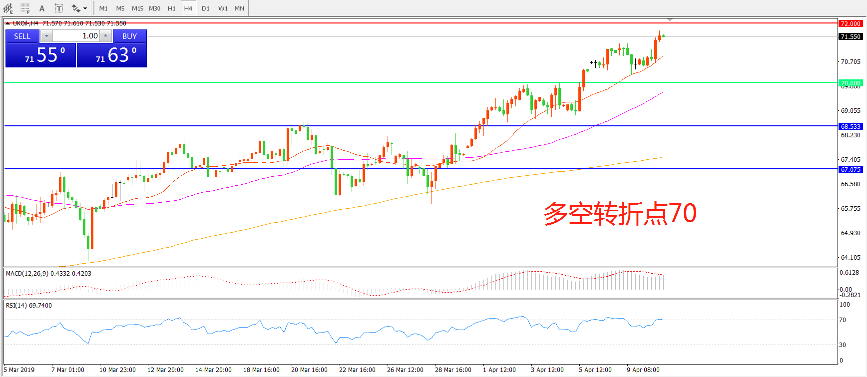 多空转折点:70.00
