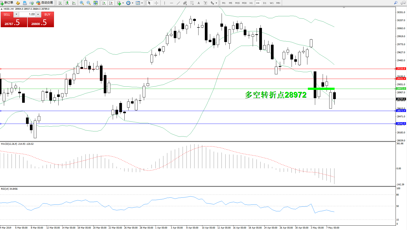 亚洲股市延续隔夜美股跌势,其中中国内地股市冲高回落,沪指跌超1%,失守2900点,香港恒生指数低开后低位震荡,截至收盘跌1.23%,收于29003.19点。市场恐慌情绪有所减弱,不过市场资金存在分歧,港股短期走势震荡为主,可留意蓝筹股。近日环球股市的大幅波动不稳定,短期内的风险相对高。暂时宜先观望。