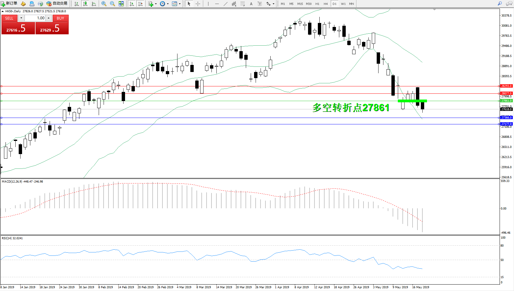 交易策略:27861下方看跌,目标27366、27177
