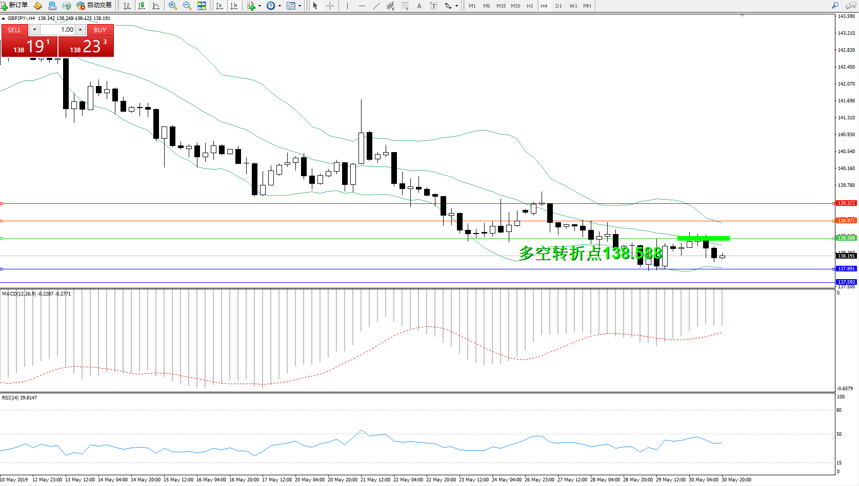 交易策略:138.588下方看跌,目标137.891、137.593