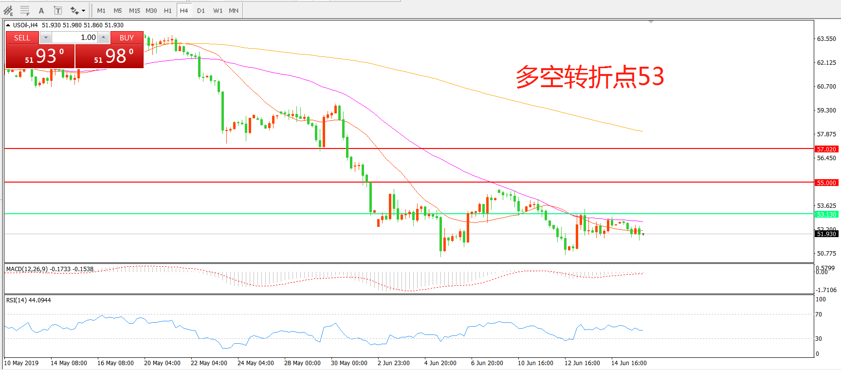 交易策略:在53.00之下看跌,目标50.00    46.00