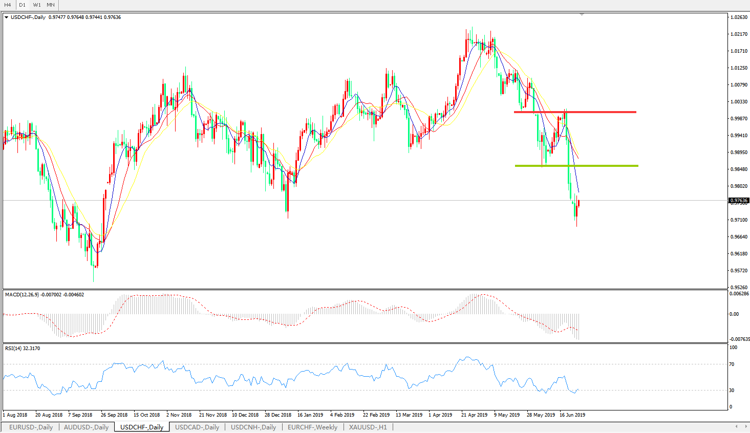 美元兑瑞郎USDCHF 日线图: