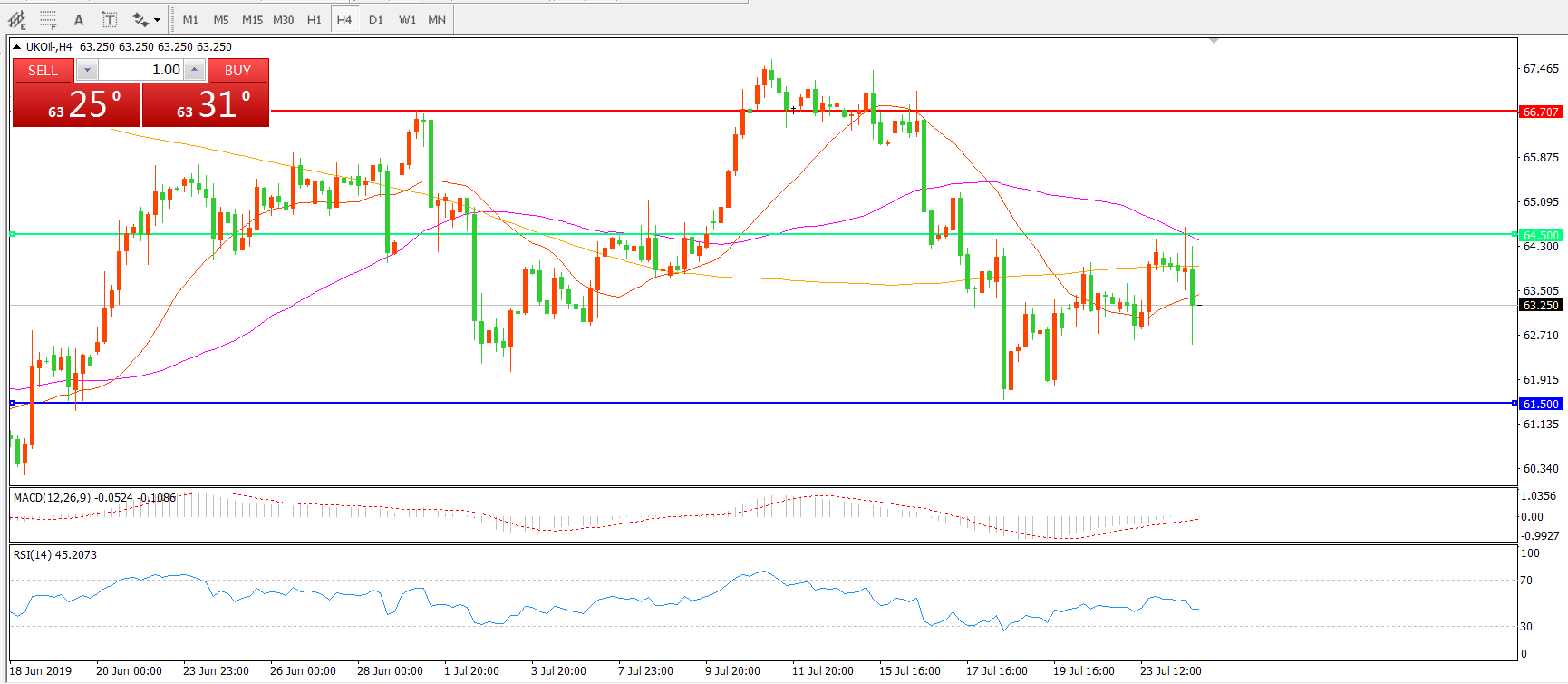 北京时间周三(7月24日)22:30,EIA公布的数据显示,截至7月19日当周,美国EIA原油库存减少1083.5万桶,好于预期。布油一度冲高,但未能守住涨幅。IMF下调全球经济预期导致投资者担心全球石油需求疲软,油价掉头大跌,最终收报63.25美元/桶。