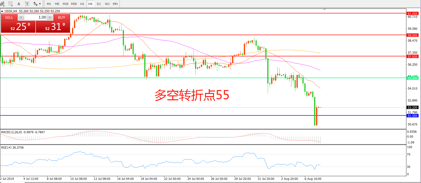 周三(8月7日)美国能源信息署(EIA)最新数据显示,截止8月2日当周,美国原油库存意外增长239万桶,而市场预期为减少285万桶,同时精炼油和汽油库存也同步攀升,全面利空的EIA数据表现导致美油大跌逾4%,最终收报52.3美元/桶。近几日全球经济衰退风险也显著攀升,这令投资者开始逃离风险资产。