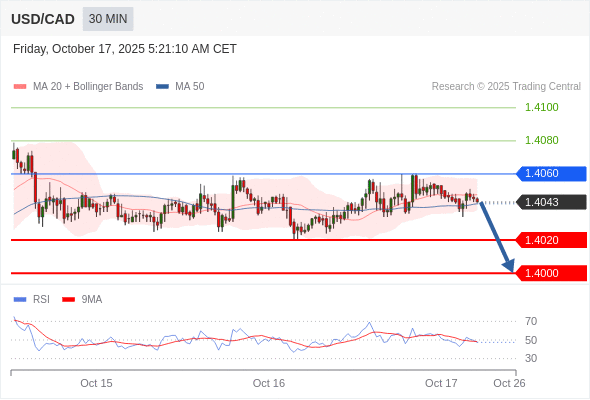 交易策略: 在 1.4060 之下,看跌,目标价位为 1.4020 ,然后为 1.4000 。