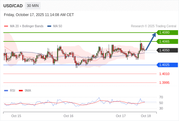 在 1.4025 之上,看涨,目标价位为 1.4060 ,然后为 1.4080 。