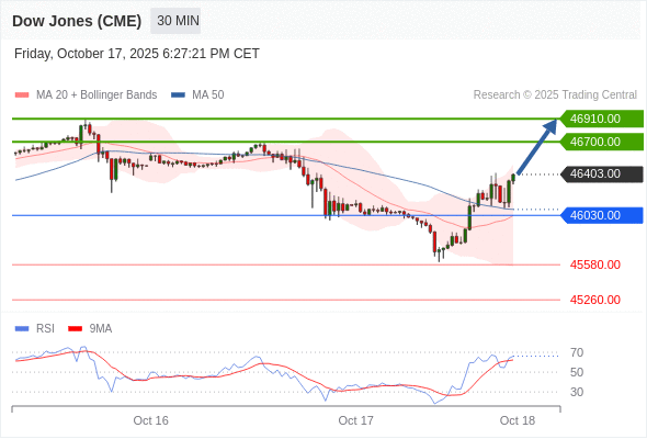 在 46030.00 之上,看涨,目标价位为 46700.00 ,然后为 46910.00 。