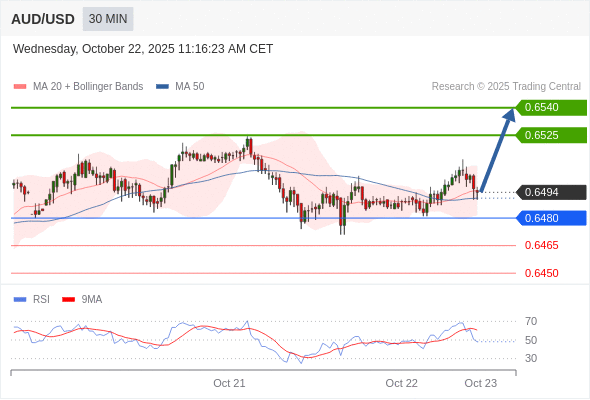 在 0.6480 之上,看涨,目标价位为 0.6525 ,然后为 0.6540 。