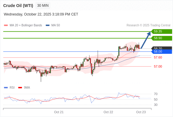 在 58.00 之上,看涨,目标价位为 58.90 ,然后为 59.35 。
