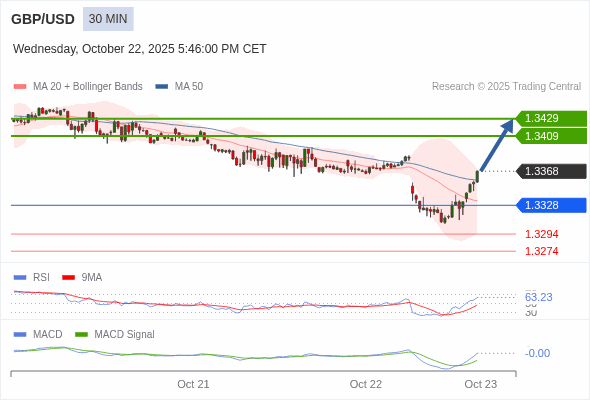 英镑/美元 当日内 : 看涨,当 1.3328 未被跌破。