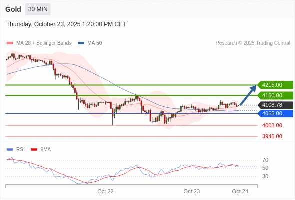 在 4065.00 之上,看涨,目标价位为 4160.00 ,然后为 4215.00 。