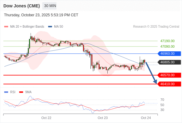 交易策略: 在 46960.00 之下,看跌,目标价位为 46570.00 ,然后为 46400.00 。