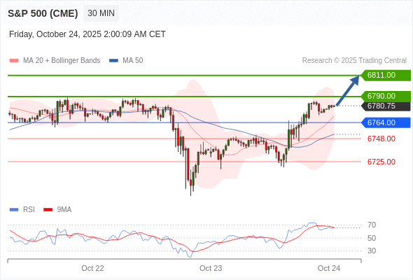 在 6764.00 之上,看涨,目标价位为 6790.00 ,然后为 6811.00 。