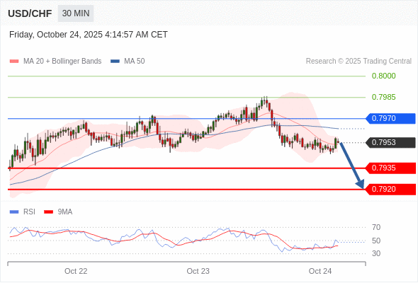 在 0.7970 之下,看跌,目标价位为 0.7935 ,然后为 0.7920 。