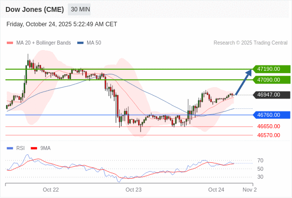 在 46760.00 之上,看涨,目标价位为 47090.00 ,然后为 47190.00 。