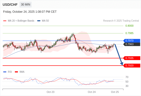 在 0.7970 之下,看跌,目标价位为 0.7935 ,然后为 0.7920 。