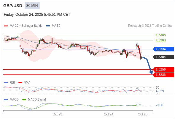 英镑/美元 当日内 : 看跌,在 1.3334 之下。