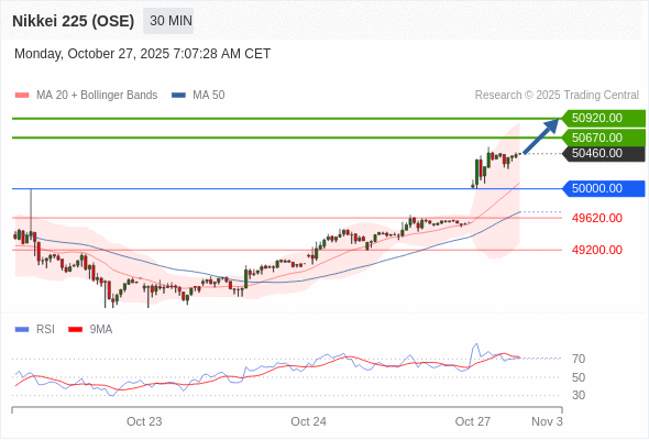 日经225股指期货 (OSE) 当日内: 目标位为50920.00。