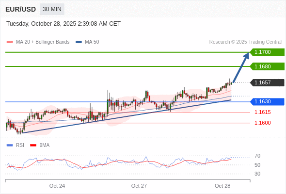 在 1.1630 之上,看涨,目标价位为 1.1680 ,然后为 1.1700 。
