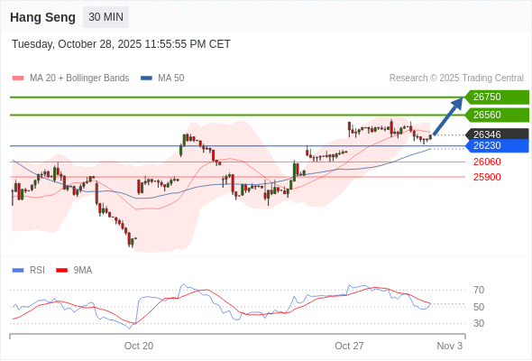 在 26230 之上,看涨,目标价位为 26560 ,然后为 26750 。