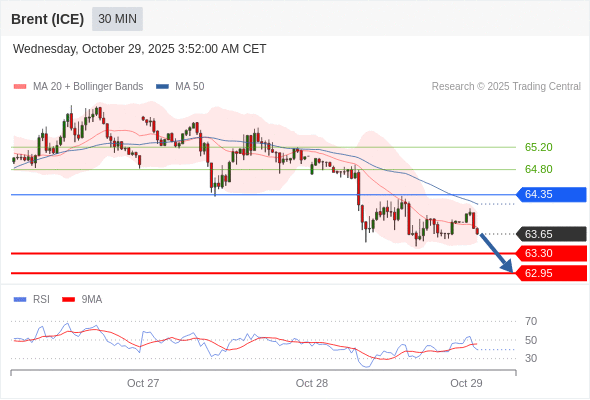 在 64.35 之下,看跌,目标价位为 63.30 ,然后为 62.95 。