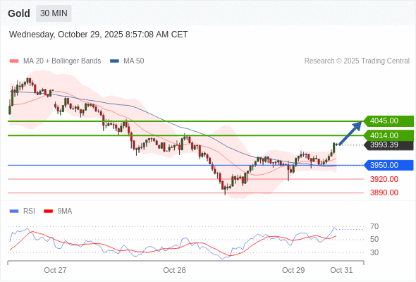 在 3950.00 之上,看涨,目标价位为 4014.00 ,然后为 4045.00 。