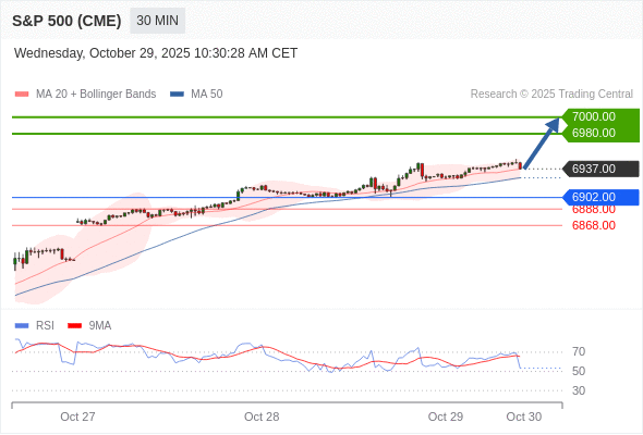 在 6902.00 之上,看涨,目标价位为 6980.00 ,然后为 7000.00 。