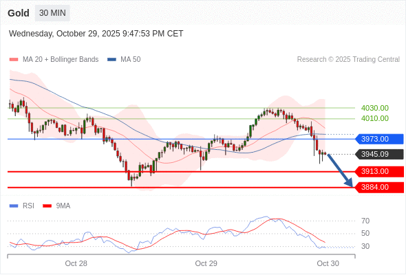 在 3973.00 之下,看跌,目标价位为 3913.00 ,然后为 3884.00 。