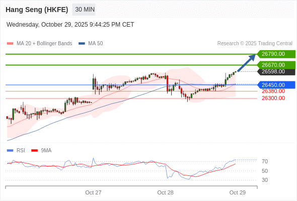 在 26450.00 之上,看涨,目标价位为 26670.00 ,然后为 26790.00 。