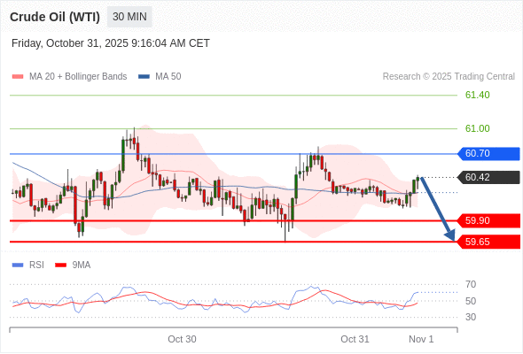 在 60.70 之下,看跌,目标价位为 59.90 ,然后为 59.65 。