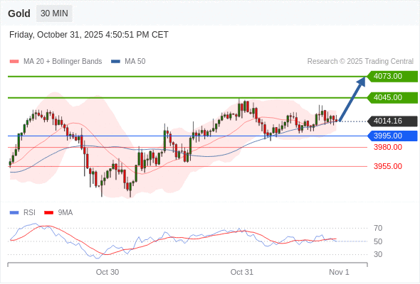 在 3995.00 之上,看涨,目标价位为 4045.00 ,然后为 4073.00 。