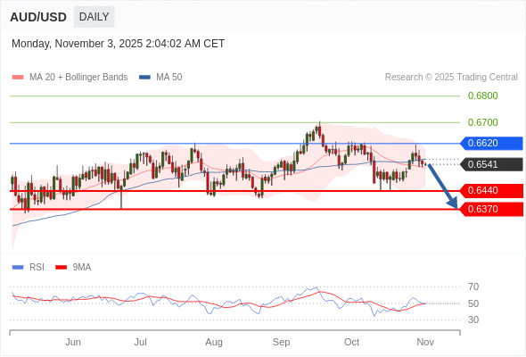 交易策略: 在 0.6620 之下,看跌,目标价位为 0.6440 ,然后为 0.6370 。