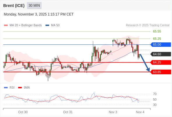 交易策略: 在 65.00 之下,看跌,目标价位为 64.25 ,然后为 63.85 。