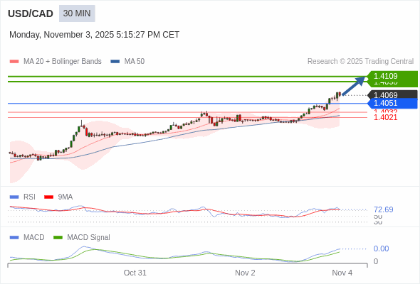 替代方案: 在1.4051以下,期待1.4032和1.4021。