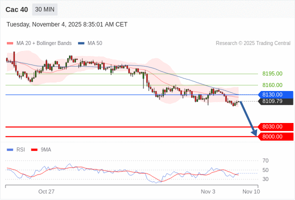 在 8130.00 之下,看跌,目标价位为 8030.00 ,然后为 8000.00 。