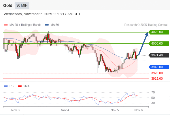 在 3943.00 之上,看涨,目标价位为 4000.00 ,然后为 4028.00 。