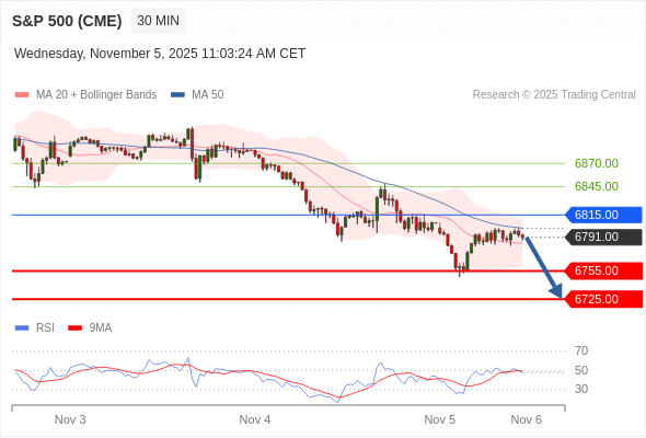 交易策略: 在 6815.00 之下,看跌,目标价位为 6755.00 ,然后为 6725.00 。