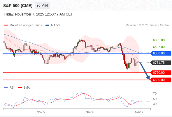 在 6800.00 之下,看跌,目标价位为 6720.00 ,然后为 6690.00 。