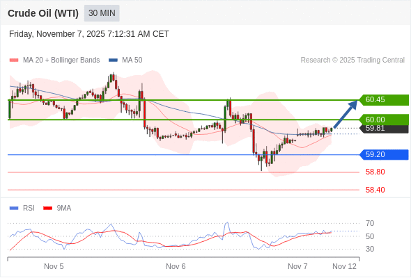 在 59.20 之上,看涨,目标价位为 60.00 ,然后为 60.45 。