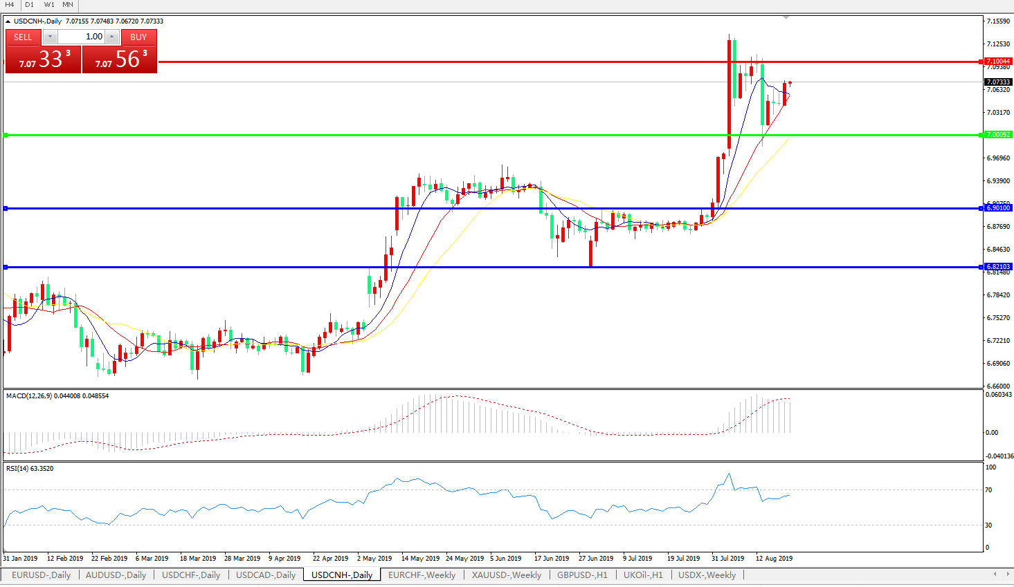 在岸人民币周一收盘仅微升1个点,日内整体波幅有限,中间价则跌逾50点创逾11年以来新低。交易员称,日内美元指数表现坚挺,客盘购汇需求不减,但各方也忌惮之后可能出现的最新市场信号,不过在实质性消息释放前,人民币或维持稳中略跌走势。 分析师指出,最近市场没什么利好,美元兑人民币上了7之后,后购汇比结汇要多一点,后面看看美指、市场结售汇情绪的变化,近期估计应该没明确的方向。日内市场购汇需求较多,估计人民币要反弹难度较大,估计短期还会在7-7.06元区间波动,等待全球市场出现新的消息。 白宫官员周日表示不赞同有关美国经济成长可能蹒跚的忧虑,称他们认为尽管一周来全球债券市场动荡,但经济发生衰退的可能性很小,不过在美联储主席鲍威尔本周稍晚在杰克森霍尔央行会议上发表讲话之前,投资者的乐观情绪可能受抑。