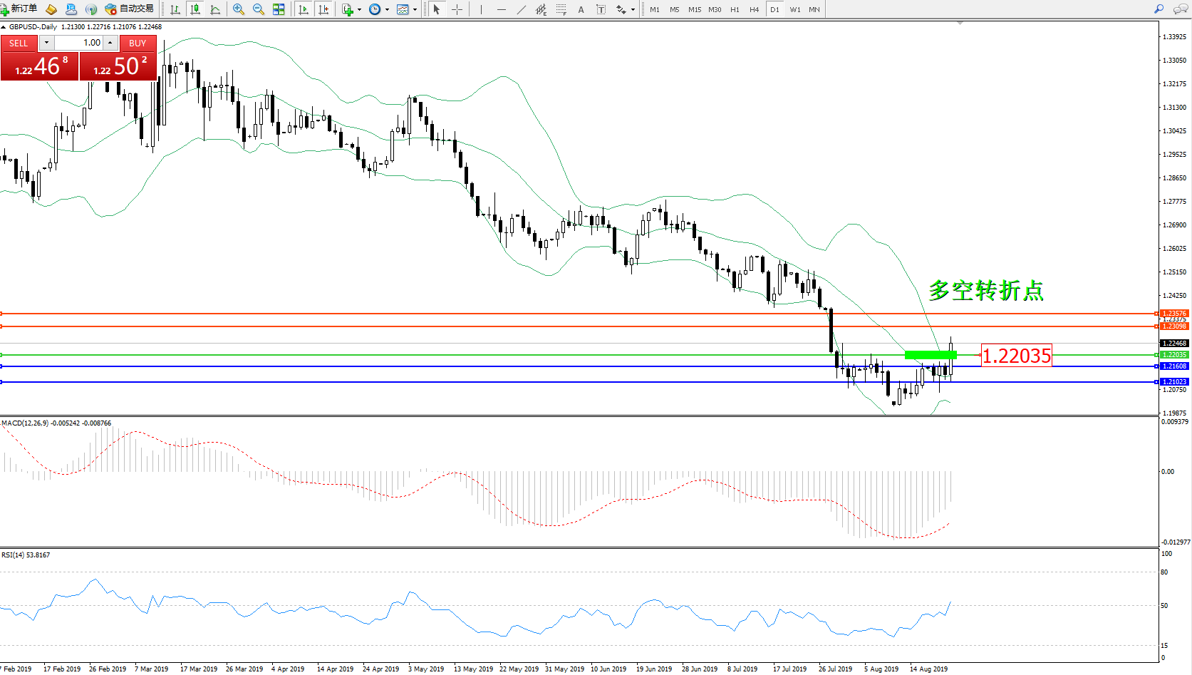 交易策略:1.22035上方看涨,目标1.23098、1.23576