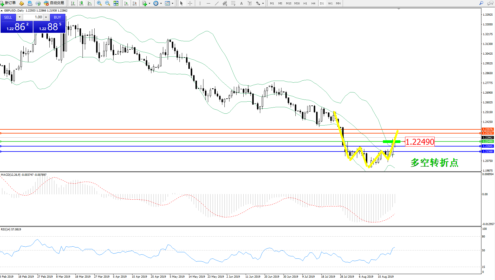 交易策略:1.22490上方看涨,目标1.23232、1.23576