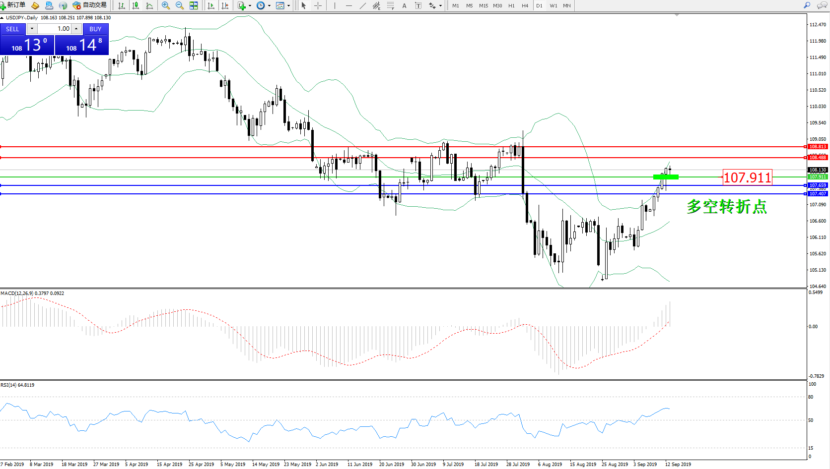 交易策略:107.911上方看涨,目标108.488、108.813