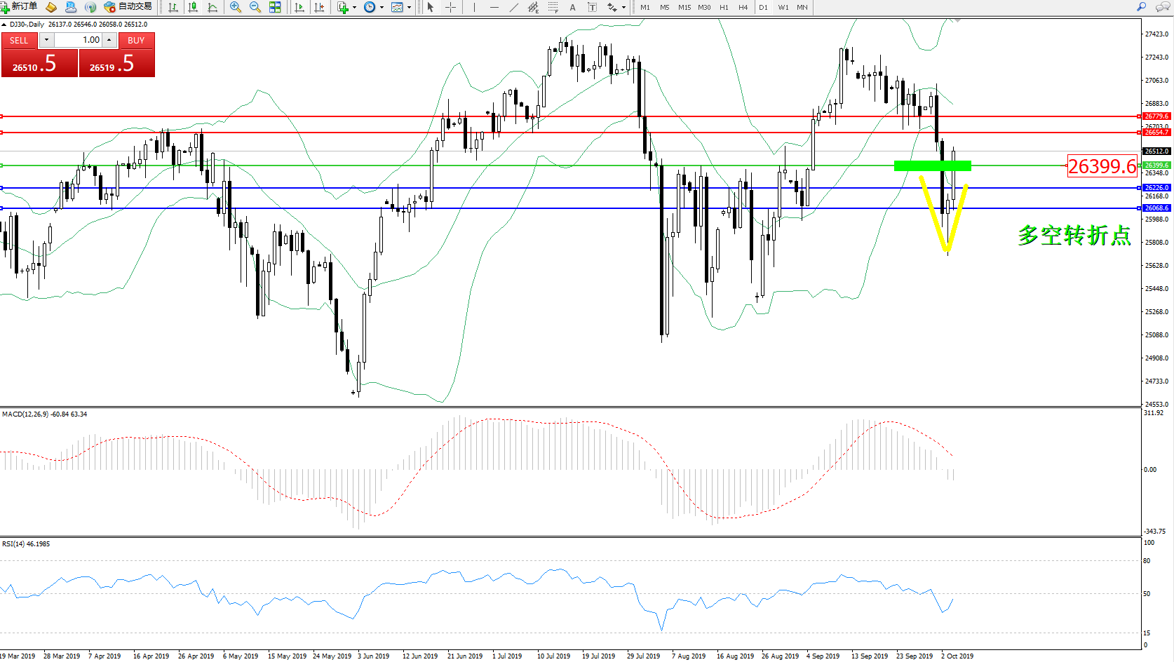道琼斯指数10月4日(周五)收盘上涨372.10点,涨幅1.42%,报26573.14点。之前报告显示美国前几个月的就业增长数据被向上修正,美国9月非农就业岗位增加13.6万个,8月增幅修正后为16.8万个,9月失业率降至近50年来最低的3.5%,令市场对美联储今年将大幅降息的押注降温。在逊于预期但整体稳健的美国就业报告出炉后一度走高,鉴于美国政治风险和贸易谈判正在进行,投资者保持谨慎态度。美国与中国的贸易谈判也是市场焦点,两国官员定于下周会面。