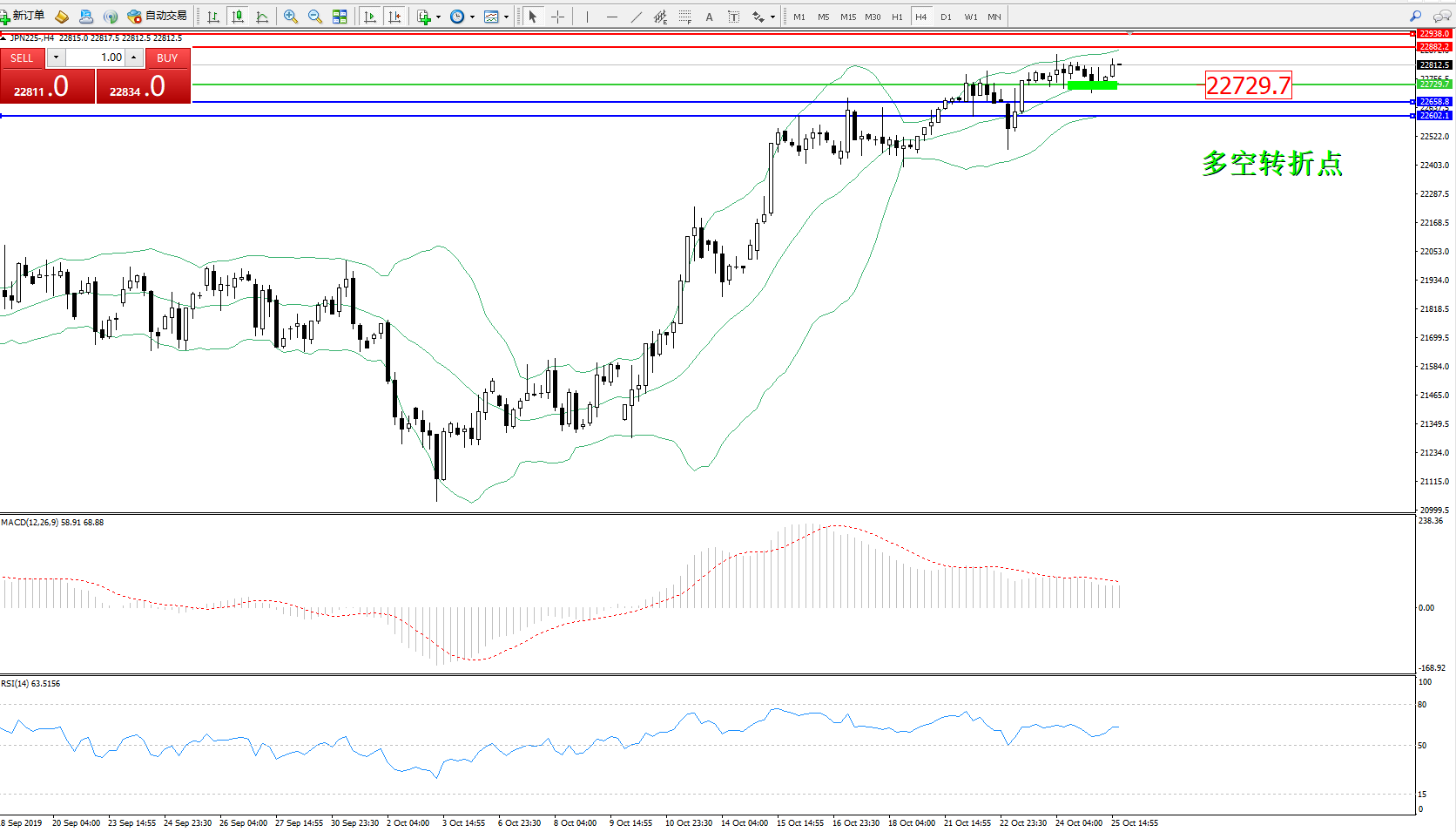 日经225指数10月25日(周五)收盘上涨49.90点,涨幅0.22%,报22800.50点。受全球需求放缓、消费税上调和台风的影响,日本10月制造业活动以三年来最快的速度萎缩。10月30日至31日,日本央行将召开货币政策会议,此次关键数据的疲软可能会增加市场对日本央行加大刺激力度的呼声。贸易问题和全球经济疲软限制了出口,制造业新订单以近7年来最快的速度下滑。尽管如此,服务经济中的新业务则表现出了相当程度的弹性。