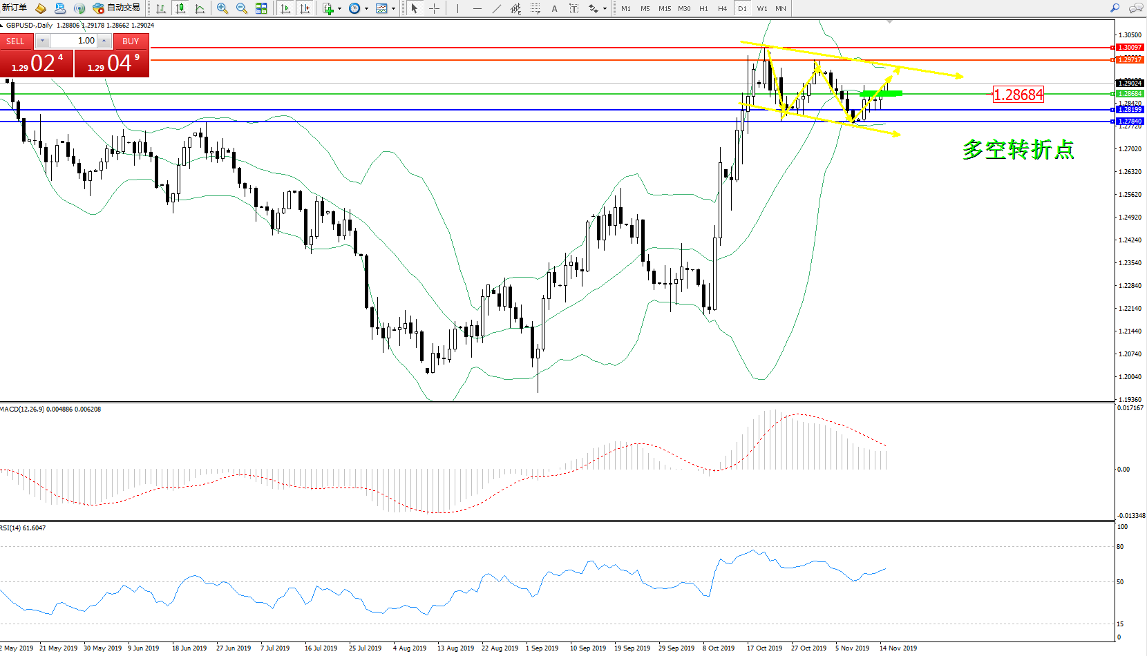 交易策略:1.28684上方看涨,目标1.297171.30097