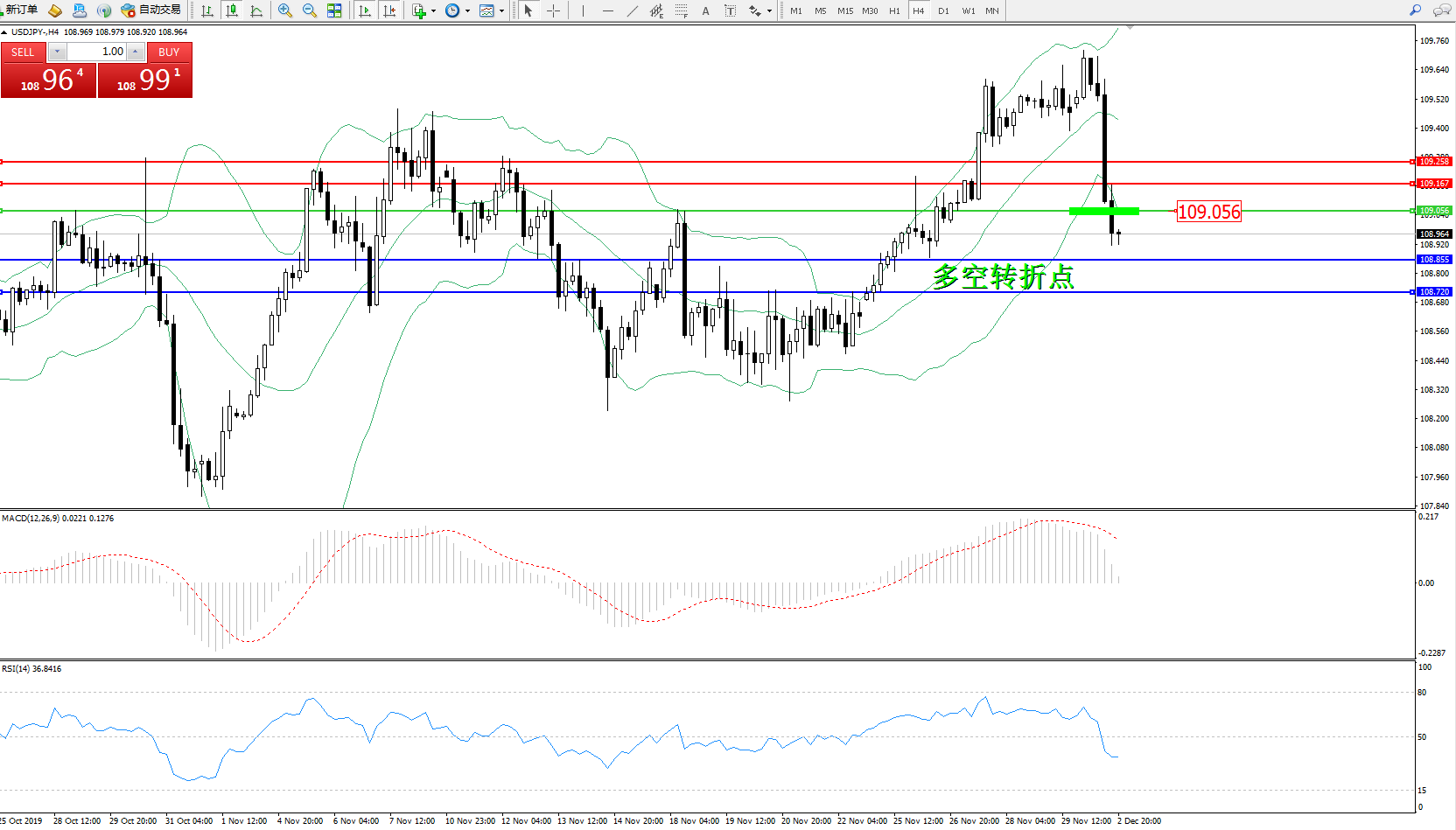 美国股指下跌,美元走软,因数据显示,10月建筑支出意外下降,民间项目投资降至三年低位;美国11月制造业活动连续第四个月萎缩,令市场担心美国可能陷入衰退。避险货币大涨,美元兑日元下跌0.47%108.98左右,最低触及108.93,为接近一周来最低;该货币对早些时候达到109.73,为530日以来最高。