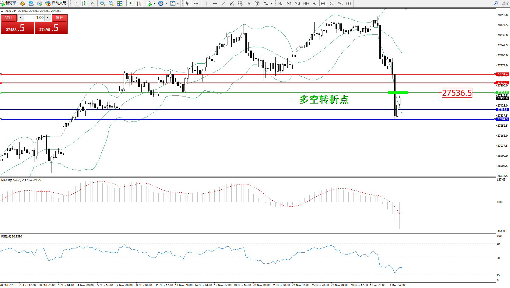 道琼斯指数12月3日(周二)收盘下跌280.10点,跌幅1.01%,报27502.94点。全球多国股市下跌,因美国总统特朗普将他的关税武器对准从南美到欧洲和中国,使全球复苏的希望破灭了。美国股市在午后交易中收窄跌幅,因房地产和公用事业等防御板块大涨。贸易叙事很快就被颠倒了,因为关税的负面新闻已经定下了市场规避风险的基调,今天的新闻提醒了整个投资领域仍然存在的下行风险。