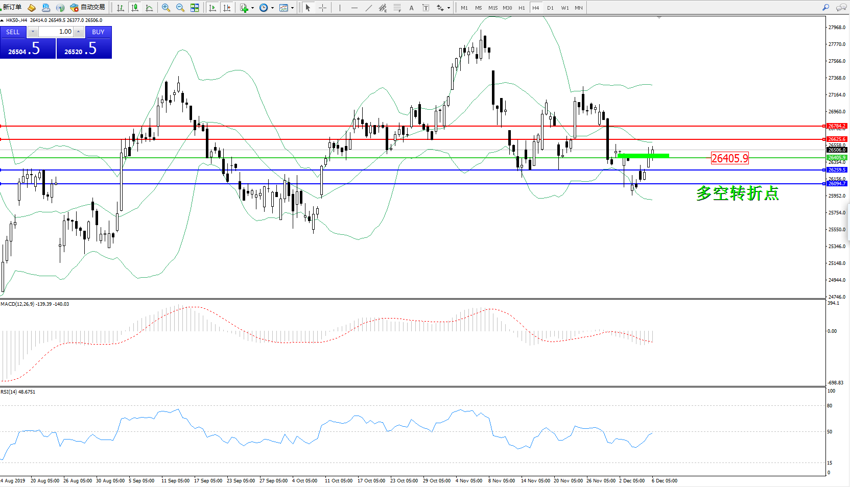 香港恒生指数126日(周五)收盘上涨281.33点,涨幅1.07%,报26498.37点;港股早上高开后曾收窄升幅,至仅升92点,恒指报26309,随后有买盘支持再造好,最多升258点,高见26475。恒指向上的动力仍不足,说明当前还未摆脱偏弱势的局面。倘若消息面上无明显变化,恒指大概率是会在当前点位附近进行盘整的。中美双方达成首阶段协议预期仍旧较大,市场持续观望国际贸易发展走向,如果消息利好,那么新一轮的行情也将开启。